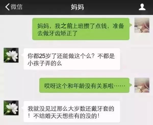你这么大年纪做什么矫正啊,还要拔四颗牙,自己作死不爱惜自己身体,花冤枉钱,天天想一出是一出,还不快点结婚!