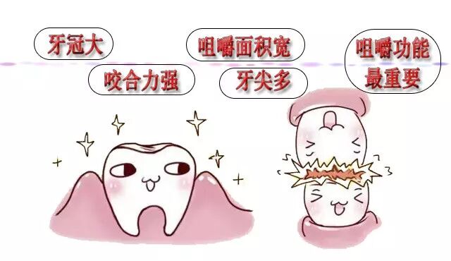 作为恒牙大哥,我将陪伴主人一生,我的强项和特点也很多,我的牙冠大 、牙尖多 、咀嚼面宽等等,并且对其它恒牙小弟的萌出和排列都起到了至关重要和定位的作用对主人的上下颌骨和面部发育也影响很大。