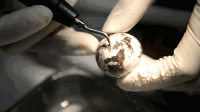 现在,我们就用洗牙的方式,清除鹌鹑蛋上的黑斑,看到底会不会伤害脆弱的鹌鹑蛋!
