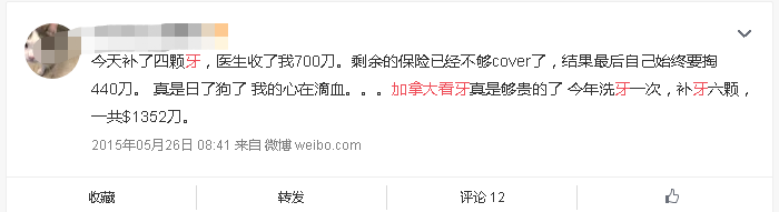 然而加拿大全民医保并不包含看牙费用,看牙费用昂贵,以洗牙为例,收费约150加元/次,折合人民币770元。