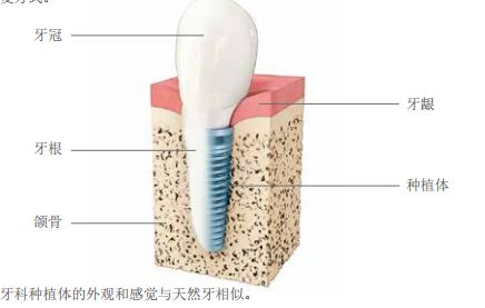 种植牙是通过外科手术将人工种植体植入缺牙区牙槽骨,再以此为基础做一个牙冠修复缺失牙。