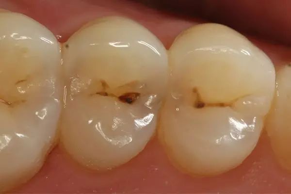 刚长出来的我们牙合面窝沟裂隙多,食物容易滞留