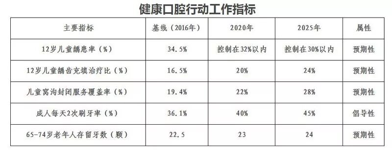 2019年2月,国家卫健委发布《健康口腔行动方案(2019-2025年)》明确提出了不同人群的口腔健康指标: